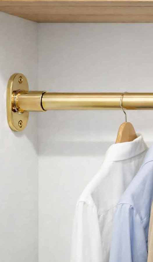 Ideal for hanging coats, jackets, shirts, dresses, and accessories, this solid brass closet rod blends heritage craftsmanship with modern functionality. Whether styled in a classic dressing room, modern walk-in closet, or contemporary wardrobe, it brings warmth, strength, and refined architectural detail without compromising aesthetics.