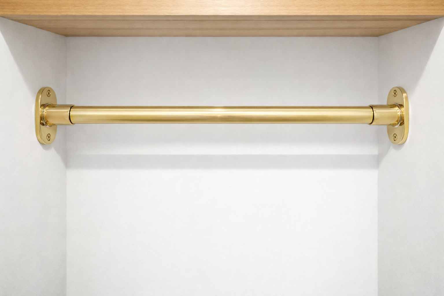 This product is made from unlacquered polished brass. Natural variations in tone and gradual patina development are normal and celebrated, giving your closet rod a distinctive, lived-in character over time.
